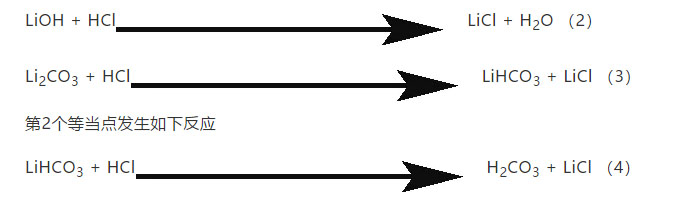 據(jù)此可分別計(jì)算出材料中殘存的LiOH和Li2CO3?!垛捤徜嚒分械臍堄鄩A含量,指的是標(biāo)準(zhǔn)HCl滴定的總的殘存鋰,以Li2CO3形式表示的百分含量。