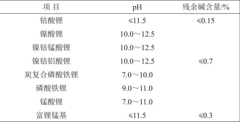 表8 正極材料標(biāo)準(zhǔn)中殘存堿量要求