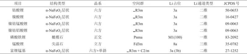 表3 正極材料標(biāo)準(zhǔn)中晶體結(jié)構(gòu)