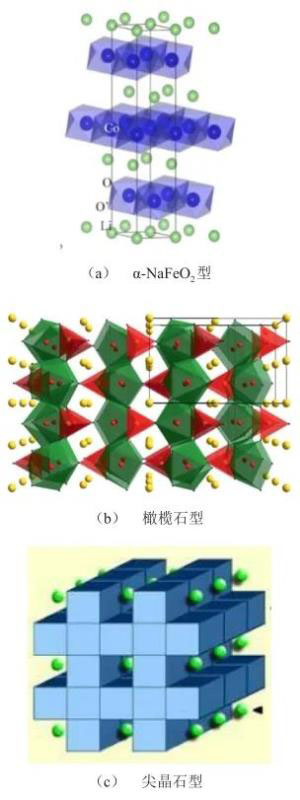 圖4 幾種常見正極材料的晶體結(jié)構(gòu)示意圖