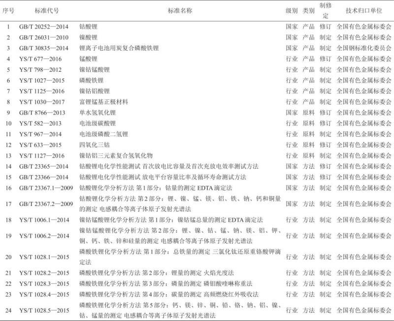 1 國(guó)內(nèi)鋰電正極材料相關(guān)標(biāo)準(zhǔn)