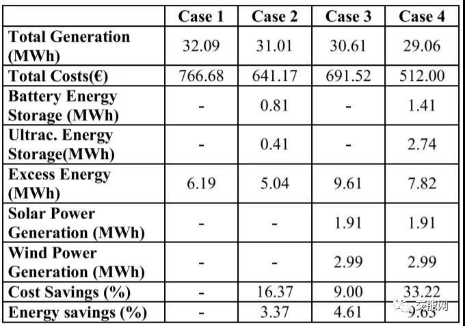 案例4(HESS 和可再生能源集成):該案例包括HESS 和可再生能源集成。通過此設(shè)置,成本和能源節(jié)約得到改善,分別實現(xiàn)了 33.22% 和 9.63% 的節(jié)約。
