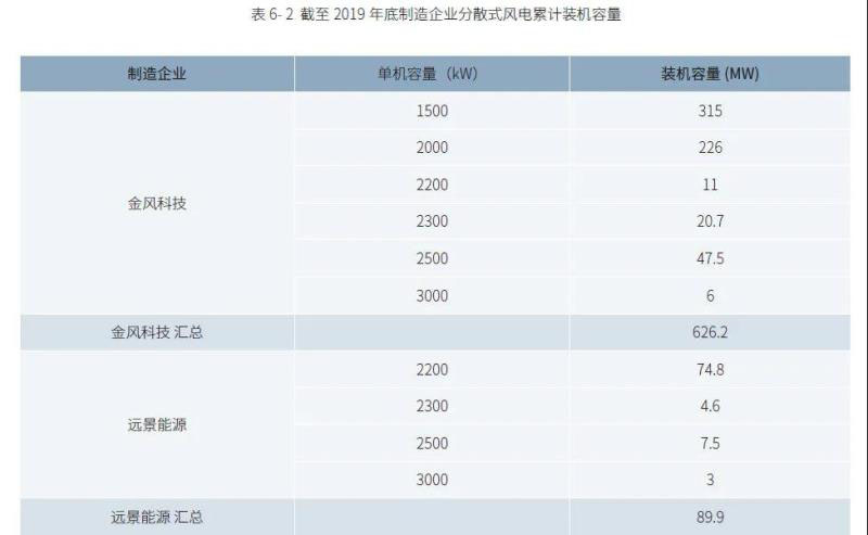 表6- 2 截至2019 年底制造企業(yè)分散式風(fēng)電累計(jì)裝機(jī)容量