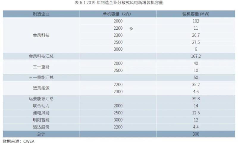 表6-1 2019 年制造企業(yè)分散式風(fēng)電新增裝機(jī)容量