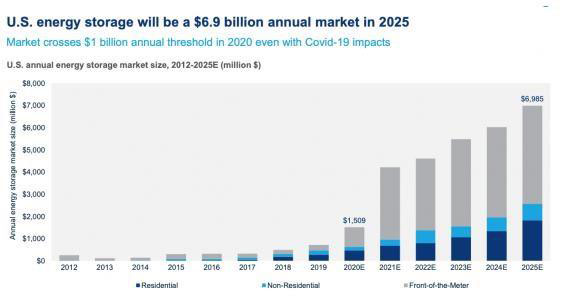 盡管由于冠狀病毒疫情造成的許可、建設(shè)和客戶獲取延誤的風(fēng)險(xiǎn)將會(huì)持續(xù)到今年第三季度和第四季度,但美國(guó)2020年市場(chǎng)仍持續(xù)增長(zhǎng)。而根據(jù)美國(guó)儲(chǔ)能協(xié)會(huì)最近發(fā)布了一項(xiàng)“擴(kuò)展愿景”報(bào)告,美國(guó)到2030年將會(huì)部署裝機(jī)容量100GW的儲(chǔ)能系統(tǒng),以支持美國(guó)向可再生能源和更高效能源的能源轉(zhuǎn)型目標(biāo),同時(shí)提高電力系統(tǒng)可靠性并以經(jīng)濟(jì)高效的方式進(jìn)行。