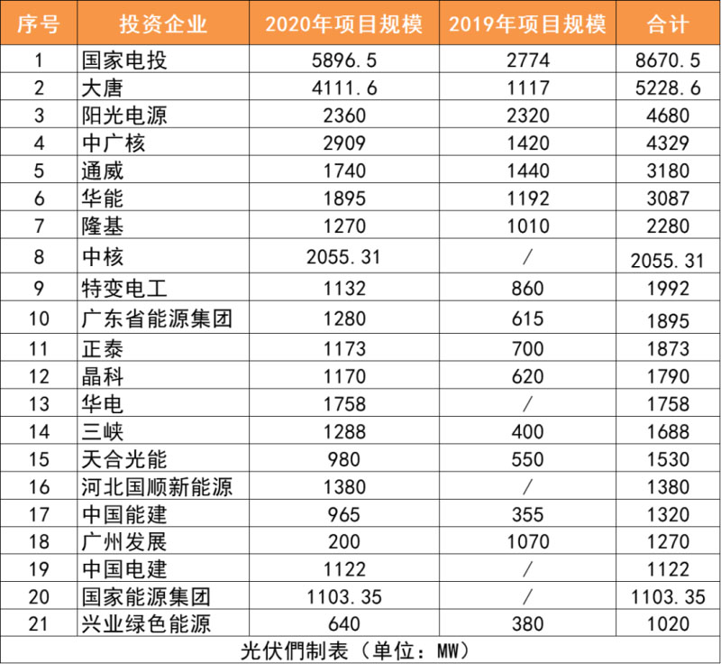 另一方面,以國(guó)家電投、大唐、中廣核、中核、華電、華能、國(guó)家能源集團(tuán)為代表的央企獲批規(guī)?;揪尸F(xiàn)出翻倍增長(zhǎng)的勢(shì)頭,尤其是大唐、中核、華電這三家2020年項(xiàng)目獲批規(guī)模暴增,成為當(dāng)之無愧的“黑馬”。值得一提的是,此前不少專注于水電、風(fēng)電項(xiàng)目開發(fā)的投資商、設(shè)計(jì)院等也在將目光轉(zhuǎn)向光伏電站投資,例如風(fēng)電巨無霸國(guó)家能源集團(tuán)也在2020年開啟了光伏電站投資之旅。