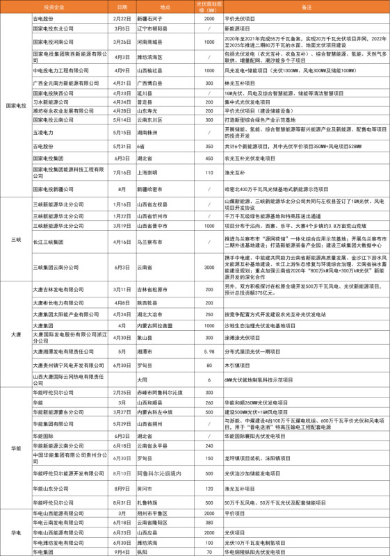 備注:上表匯總了自1月起各企業(yè)簽署擬投建的光伏項(xiàng)目,因項(xiàng)目較多,如有疏漏,歡迎在評(píng)論區(qū)留言修正。