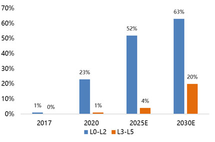 圖2 | 我國自動駕駛卡車滲透率(信息來源Roland Berger,百人會智能網(wǎng)聯(lián)研究院整理)