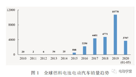 乘用車是前期氫燃料電池電動(dòng)汽車的主要發(fā)展方向,但近年來動(dòng)力電池技術(shù)進(jìn)步和成本下降明顯,導(dǎo)致氫燃料電池乘用車的購置和使用成本與純電動(dòng)汽車相比均不具備優(yōu)勢(shì),推廣總量有限。截止到2020年5月,全球主要國家的燃料電池電動(dòng)汽車銷量如圖1所示。