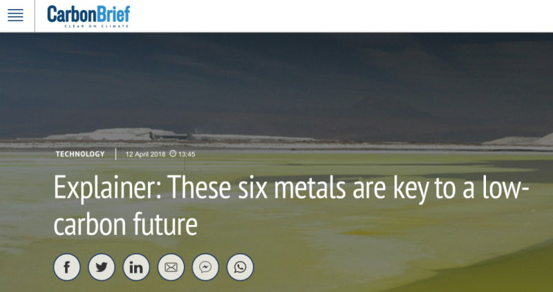 The CarbonBrief網(wǎng)站發(fā)表文章,介紹全球能源低碳轉(zhuǎn)型需要的6種關(guān)鍵金屬,評(píng)估了這些金屬的儲(chǔ)量和分布,以及是否會(huì)對(duì)實(shí)現(xiàn)《巴黎協(xié)定》的氣候目標(biāo)構(gòu)成障礙。