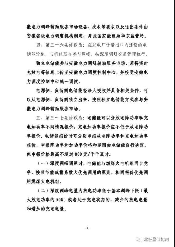 為貫徹落實《國家能源局關于印發(fā)<完善電力輔助服務補償(市場)機制工作方案>的通知》(國能發(fā)監(jiān)管〔2017〕67號)、《國家發(fā)展改革委 國家能源局關于提升電力系統(tǒng)調(diào)節(jié)能力的指導意見》(發(fā)改能源〔2018〕364號)等文件要求,提升安徽電力系統(tǒng)調(diào)節(jié)能力,調(diào)動電化學儲能電站提供輔助服務的積極性,促進光伏、風電等可再生能源消納,我局組織起草了電化學儲能電站參與安徽電力調(diào)峰輔助服務市場規(guī)則條款(詳見附件)。現(xiàn)向社會公開征求意見。