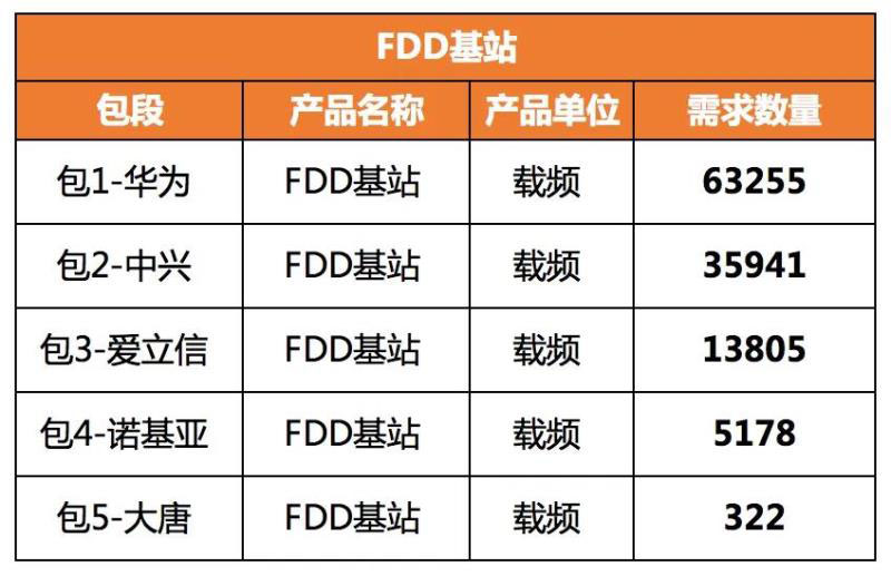 由于本次集采采用單一來源方式,也就是說從現(xiàn)網(wǎng)設備商直接采購,因此華為、中興、愛立信、諾基亞、大唐移動五大設備商均獲得了份額。