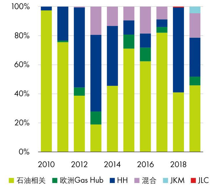 圖6 2010~2019年新LNG合約量中定價方式組成(按價格指數(shù))