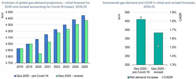 IEA預(yù)計,2021年全球天然氣需求將逐步復(fù)蘇,但疫情的影響是長期的,天然氣需求增長受各種不確定因素影響。到2025年,全球天然氣需求預(yù)計每年僅增長1.5%,低于IEA此前1.8%的預(yù)期。疫情的影響將導(dǎo)致到2025年的需求損失達(dá)750億立方米/年,這與2019年全球需求的年增長相同。