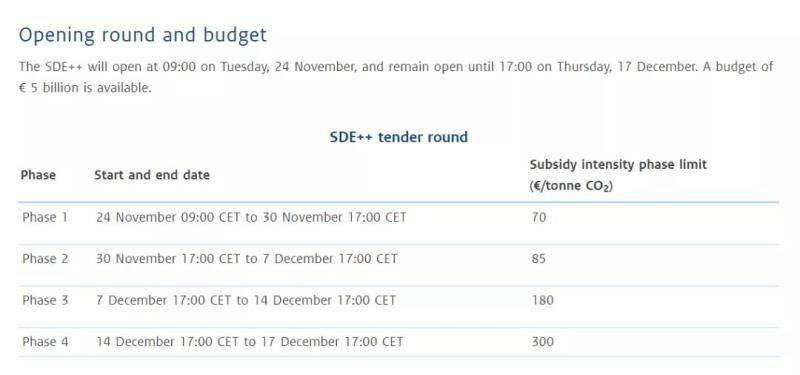 荷蘭可持續(xù)能源轉(zhuǎn)型補(bǔ)貼(SDE++)補(bǔ)貼總金額50億歐元,適用于工業(yè)、交通、電力、農(nóng)業(yè)和建筑環(huán)境等低碳技術(shù),申請(qǐng)時(shí)間是11月24日至12月17日。