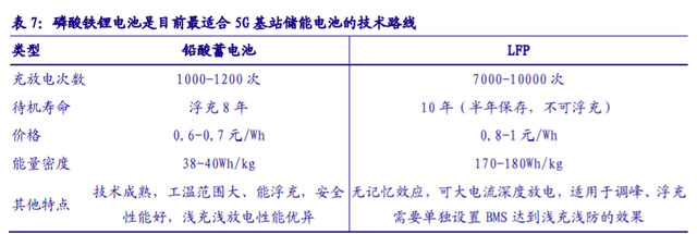 鐵鋰電池成本持續(xù)下降,優(yōu)勢(shì)突顯,替代鉛蓄電池成為 5G 基站儲(chǔ)能的主要形式。磷酸鐵鋰電池充放電次數(shù)可達(dá) 7000-10000 次,是鉛蓄電池的 7-8 倍;能量密度可達(dá)到 170-180Wh/kg,高于鉛蓄電池 3-4 倍。因此,磷酸鐵鋰電池的運(yùn)用能夠降低 5G 基站的運(yùn) 行成本,提升運(yùn)行效率,同時(shí)免除鉛蓄電池的環(huán)保壓力。在政策和鋰電技術(shù)的雙重推動(dòng)下, 鐵鋰電池對(duì)鉛蓄電池有明顯的替代優(yōu)勢(shì)。