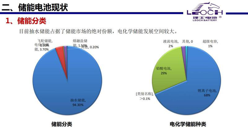 這是我們儲(chǔ)能電池現(xiàn)狀。抽水儲(chǔ)能占的比例是94%,電化學(xué)儲(chǔ)能站的比例比較小,但另外一個(gè)方向也說(shuō)明電化學(xué)儲(chǔ)能發(fā)展空間很大。右邊的圖,鋰電池在電化學(xué)儲(chǔ)能里的比例越來(lái)越高,我這個(gè)還是2018年的數(shù)據(jù),上午劉秘書(shū)長(zhǎng)講鋰電池目前達(dá)到80%多,鉛酸還在下降。
