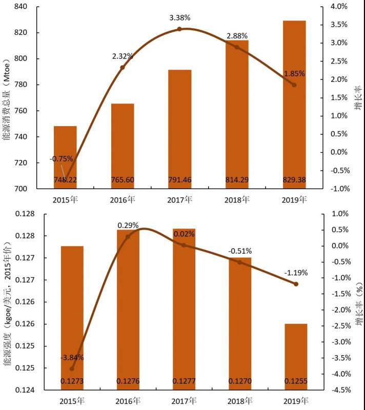 圖2 2015-2019年非洲地區(qū)能源消費(fèi)總量、強(qiáng)度情況