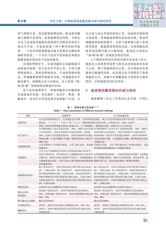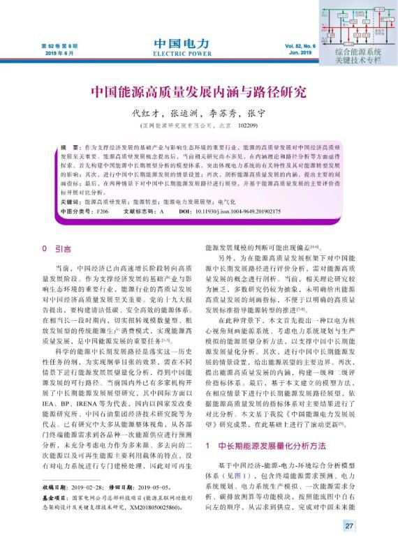摘要:作為支撐經(jīng)濟(jì)發(fā)展的基礎(chǔ)產(chǎn)業(yè)與影響生態(tài)環(huán)境的重要行業(yè),能源的高質(zhì)量發(fā)展對中國經(jīng)濟(jì)高質(zhì)量發(fā)展至關(guān)重要。能源高質(zhì)量發(fā)展概念提出后,當(dāng)前相關(guān)研究尚不多見,在內(nèi)涵理論和路徑分析等方面亟待探索。首先構(gòu)建中國能源中長期展望分析的模型體系,突出體現(xiàn)電力系統(tǒng)的有關(guān)特性及其對能源轉(zhuǎn)型發(fā)展的影響;其次,進(jìn)行中國中長期能源發(fā)展的情景設(shè)置;再次,剖析能源高質(zhì)量發(fā)展的內(nèi)涵,提出主要的刻畫指標(biāo);最后,在兩種情景下對中國中長期能源發(fā)展路徑進(jìn)行展望,并基于能源高質(zhì)量發(fā)展的主要評價(jià)指標(biāo)開展對比分析。