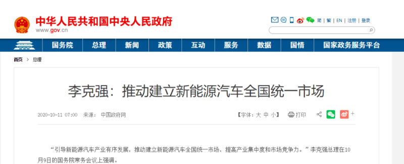“引導(dǎo)新能源汽車產(chǎn)業(yè)有序發(fā)展,推動建立新能源汽車全國統(tǒng)一市場,提高產(chǎn)業(yè)集中度和市場競爭力?!崩羁藦?qiáng)總理在10月9日的國務(wù)院常務(wù)會議上強(qiáng)調(diào)。