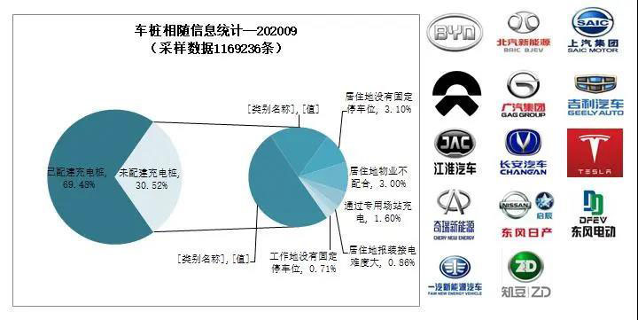 截至2020年9月,通過聯(lián)盟成員內(nèi)整車企業(yè)采樣約116.9萬輛車的車樁相隨信息,其中建設安裝私人類充電樁81.2萬臺,未配建私人樁數(shù)量35.7 萬臺,整體未配建率30.5%。