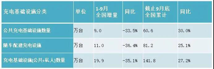 2020年1-9月,充電基礎設施增量為19.9萬臺,雖然近兩個月增量有所回升,但由于公共充電基礎設施上半年增量不高,且隨車配建充電設施依然較少,同比依然下降35.1%。