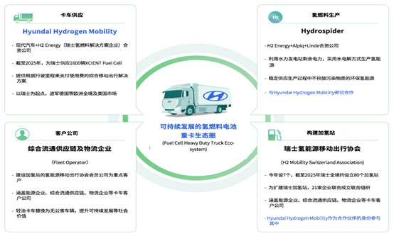 同時(shí),XCIENT Fuel Cell在瑞士將推出全新概念的移動(dòng)出行服務(wù)形態(tài):采用根據(jù)行駛里程來支付使用費(fèi)(Pay-Per-Use)。該使用費(fèi)中涵蓋了充電費(fèi)、維修費(fèi)、保險(xiǎn)費(fèi)及定期保養(yǎng)費(fèi)等與車輛行駛相關(guān)的各類費(fèi)用。該服務(wù)形態(tài)建立一個(gè)全方位的氫能源生態(tài)系統(tǒng),集車輛供應(yīng)、客戶企業(yè)、加氫站、氫能源生產(chǎn)等4大領(lǐng)域于一體,將卡車的生產(chǎn)、服務(wù)和應(yīng)用場景相結(jié)合,可以在區(qū)域性線路上形成閉環(huán),從而提高卡車運(yùn)行路線與時(shí)間的確定性,使得投資回報(bào)變得可以計(jì)算。