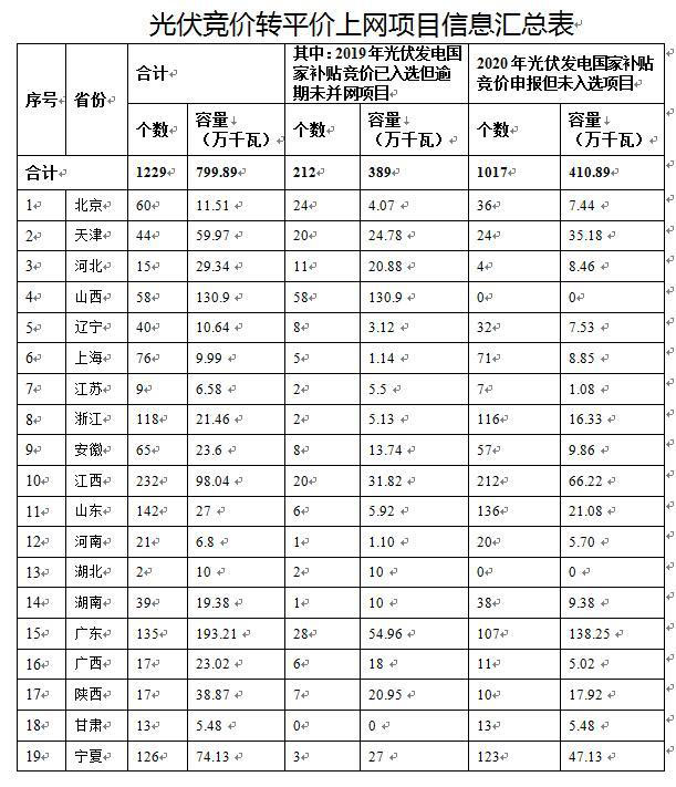 附件:1. 光伏競價轉(zhuǎn)平價上網(wǎng)項目信息匯總表