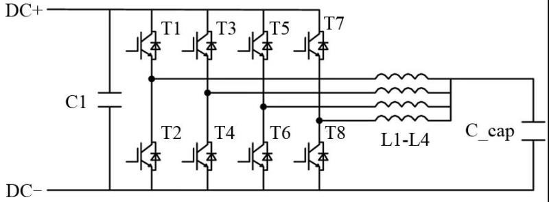 斬波器的主電路采用交錯并聯(lián)的Buck-Boost電路拓撲,超級電容充電時由上管的IGBT和下管的反并聯(lián)二極管構(gòu)成降壓斬波電路,超級電容放電時由下管的IGBT和上管的反并聯(lián)二極管構(gòu)成升壓斬波電路,多支路交錯并聯(lián)可以有效降低總輸出電流的紋波系數(shù)。
