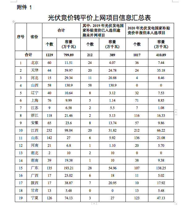 附件:1. 光伏競價轉(zhuǎn)平價上網(wǎng)項目信息匯總表