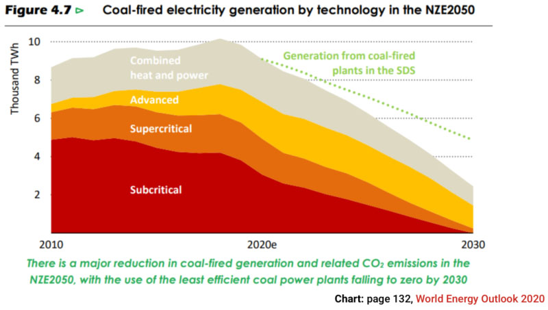 在這個(gè)情景下,效率低下的“亞臨界”燃煤發(fā)電廠需要在2030年前完全淘汰,以使世界在2050年之前走上零排放的道路。