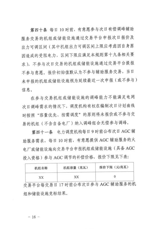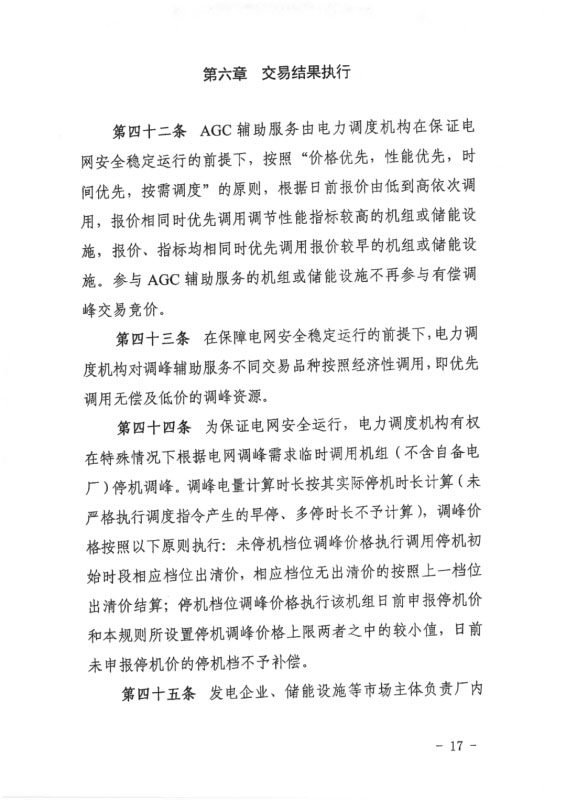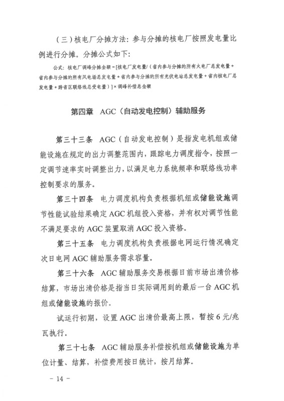 此外,AGC輔助服務(wù)交易增加儲(chǔ)能設(shè)施投入資格,AGC出清最高上限暫按6元/MW執(zhí)行。