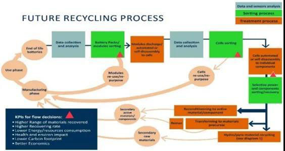 圖8. 未來的電池回收過程:直接回收與再利用過程有機(jī)的整合
