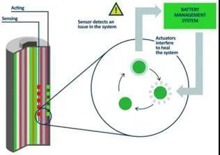 長期計(jì)劃:依靠先進(jìn)的BMS控制傳感器的通信,新的AI協(xié)議通過無線方式實(shí)現(xiàn)完全可操作的智能電池組。在未來的電池設(shè)計(jì)中,將感測(cè)/監(jiān)視與刺激引起的局部自愈合機(jī)制結(jié)合,從而可以通過集成感測(cè)-BMS-自愈合系統(tǒng)得到智能電池。