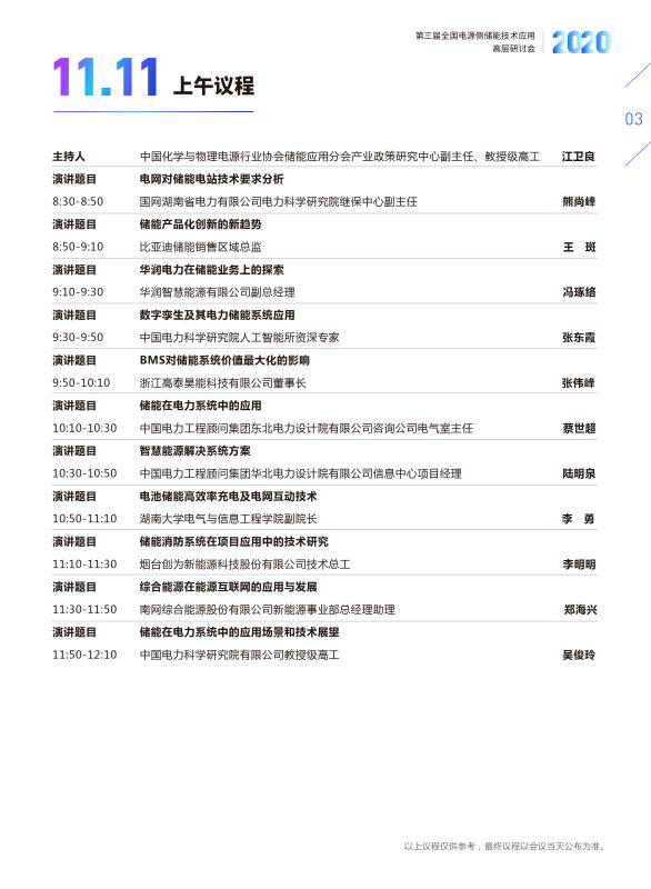 本次高層研討會以“引領電源側儲能工程應用 推進儲能產(chǎn)業(yè)高質(zhì)量發(fā)展”為主題,將邀請儲能領域?qū)<覍W者、政府主管部門領導、新能源業(yè)主單位、發(fā)電集團、設計院、電網(wǎng)公司、系統(tǒng)集成商以及投融資機構企業(yè)負責人及相關產(chǎn)業(yè)代表等共同參與探討和交流。以下為主要議程: