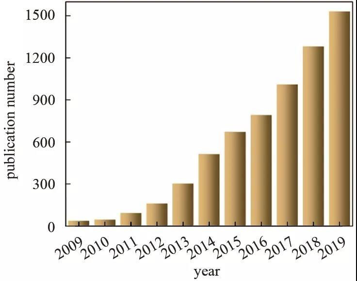 圖2 近10年內(nèi)鋰硫電池領(lǐng)域發(fā)表文章統(tǒng)計(jì)(數(shù)據(jù)來源Web of Science, 2019年12月更新數(shù)據(jù))