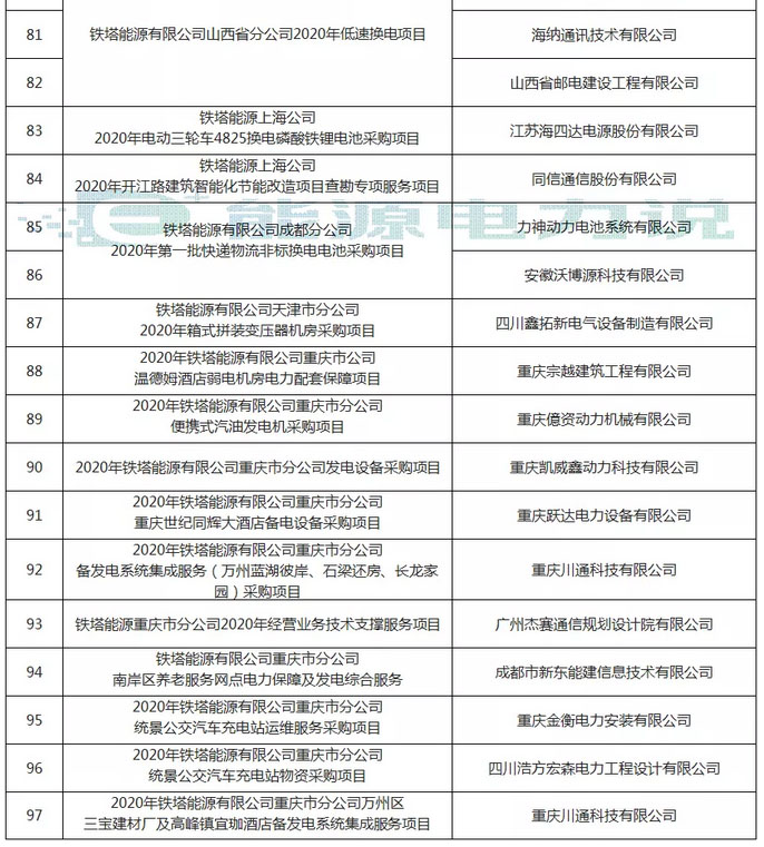據(jù)統(tǒng)計(jì)共81家單位(含聯(lián)合體)中標(biāo)鐵塔能源公司的項(xiàng)目。