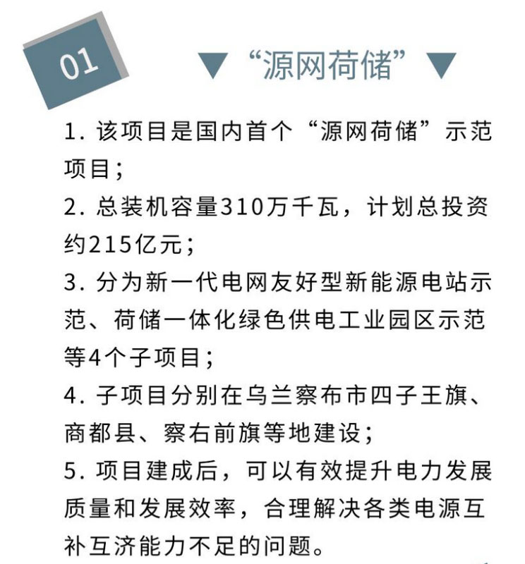 “源網(wǎng)荷儲(chǔ)”項(xiàng)目是一種包含“電源、電網(wǎng)、負(fù)荷、儲(chǔ)能”整體解決方案的運(yùn)營模式,可精確控制用電負(fù)荷和儲(chǔ)能資源,解決清潔能源消納及其產(chǎn)生的電網(wǎng)波動(dòng)性等問題。對(duì)于烏蘭察布市就地消納清潔能源、解決地區(qū)缺電問題、促進(jìn)與電網(wǎng)友好協(xié)同發(fā)展具有重要意義。