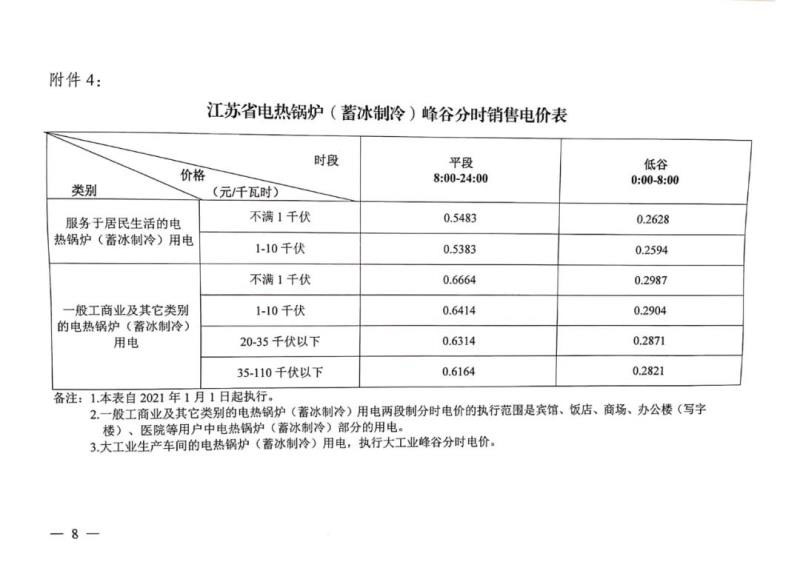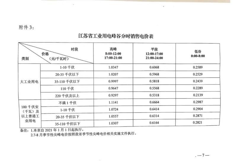 三、為應(yīng)對(duì)新冠疫情影響,今年國(guó)家實(shí)施階段性降低企業(yè)用電成本政策,本年度繼續(xù)執(zhí)行現(xiàn)行輸配電價(jià)和銷售電價(jià)。本通知所附江蘇電網(wǎng)輸配電價(jià)和銷售電價(jià)自2021年1月1日起執(zhí)行。