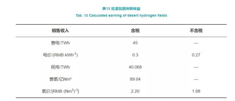 主要的投資,65%用于光伏電站,光伏發(fā)電用來(lái)電解制氫,10%的高峰電力用于外送,以平衡系統(tǒng)負(fù)荷,提高項(xiàng)目的經(jīng)濟(jì)性?;哪畾涮餃y(cè)算收益如表13所示。