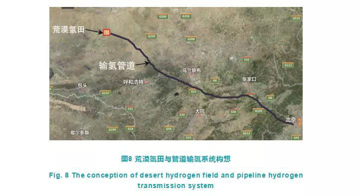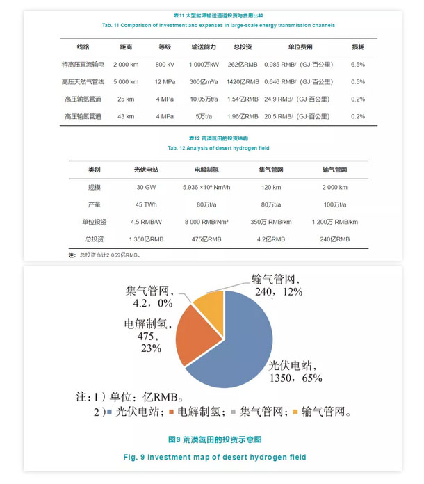 荒漠氫田是以制氫為目的的光伏、風(fēng)電和電解制氫、管道輸氫系統(tǒng),包括:400 km2的荒漠光伏電站及附屬系統(tǒng),80萬(wàn)t/a的電解水系統(tǒng),和100萬(wàn)t/a、2 000 km集氣高壓輸氫管線。