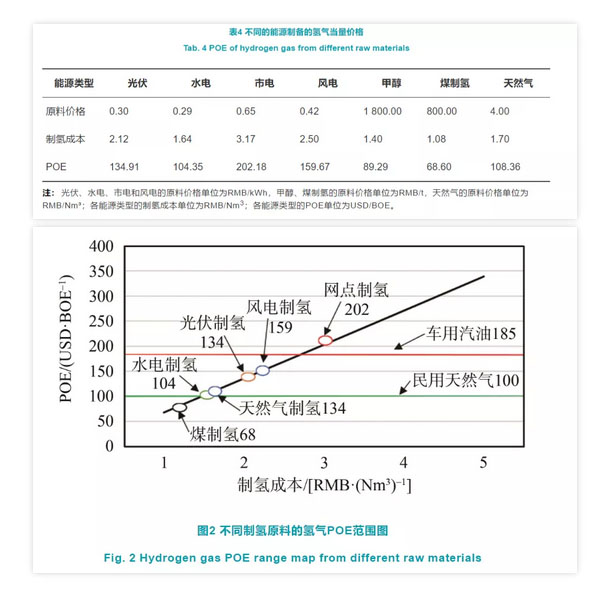 根據(jù)能量換算的石油當(dāng)量的價(jià)格,主要的制氫成本如表4和圖2所示。
