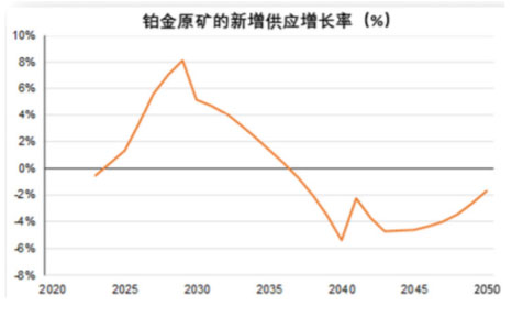 圖5鉑金原礦的新增供應(yīng)增長(zhǎng)率