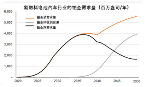 圖4氫燃料電池汽車行業(yè)的鉑金需求量
