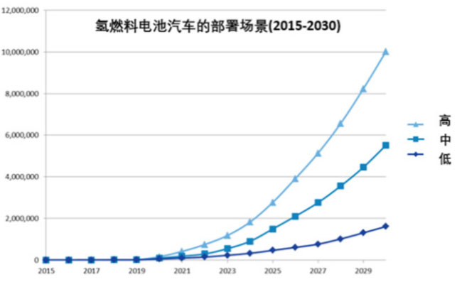 至于在這十年里累計(jì)能銷售多少輛氫燃料電池汽車,各方預(yù)測(cè)結(jié)果不一。E4tech認(rèn)為到2030年為止,較為合理的輕型燃料電池汽車的銷量上限累計(jì)為1000萬(wàn)(如圖3所示)。據(jù)此估算,假設(shè)全球汽車的年銷量保持在1億輛左右,該預(yù)測(cè)數(shù)字相當(dāng)于每年氫燃料電池汽車銷量約占當(dāng)年輕型車銷量的1%左右。
