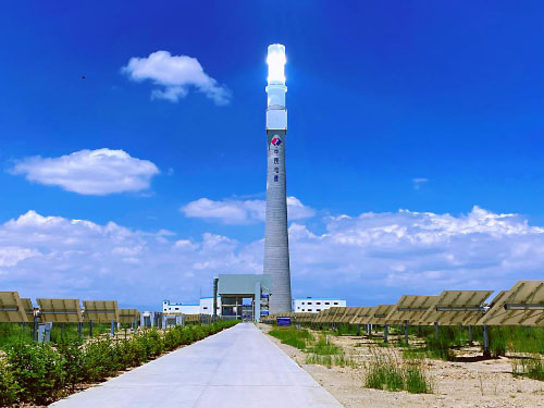 共和光熱項(xiàng)目采用單塔式太陽能集熱系統(tǒng),配置定日鏡場(20㎡定日鏡30016面,鏡場總采光面積約為60.032萬㎡),配套裝機(jī)容量為50MW汽輪發(fā)電機(jī)組額定功率滿發(fā)約6小時的熔鹽儲熱系統(tǒng),具備常規(guī)火力發(fā)電復(fù)雜的工藝流程,與傳統(tǒng)的光伏發(fā)電相比具有連續(xù)、穩(wěn)定輸出的特點(diǎn),即使在夜間或陰雨天也可源源不斷的輸送清潔電力資源。