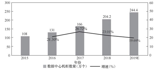 2015—2019年我國(guó)數(shù)據(jù)中心機(jī)柜數(shù)量