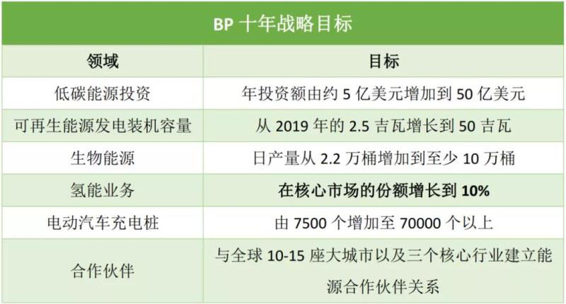 其中,在該“十年戰(zhàn)略”中,BP提出氫能業(yè)務(wù)在核心市場的份額要增長到10%。仔細(xì)觀察會發(fā)現(xiàn),氫能是BP“十年戰(zhàn)略”中唯一提出了明確目標(biāo)的業(yè)務(wù),這也表明了BP對于氫能的重視。