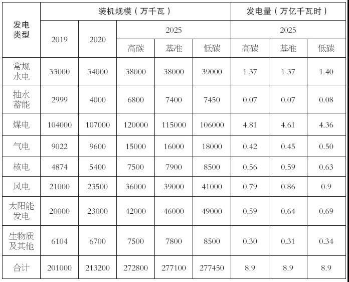 表3 2025年全國電源裝機(jī)規(guī)模及發(fā)電量