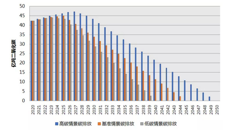 圖1 2020~2050年電力行業(yè)二氧化碳排放量
